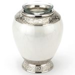This urn measures approximately 5″ High and suitable to hold cremated ashes of a small pet or to keep other memorabilia. Ashes of your loved one are safely preserved in this urn in a peaceful and dignified manner via a top silver lid.